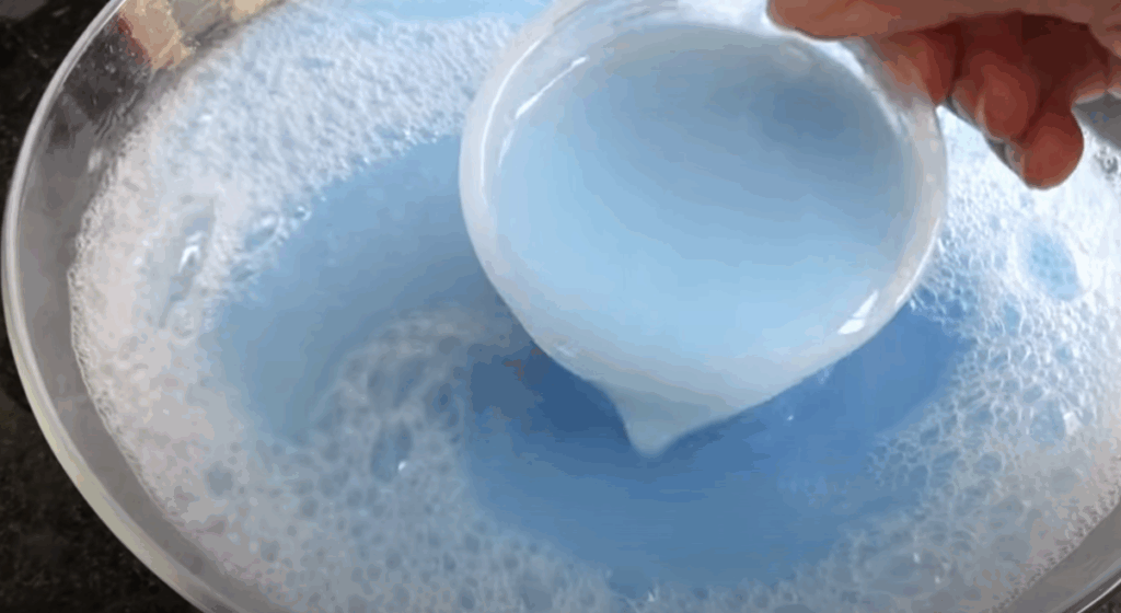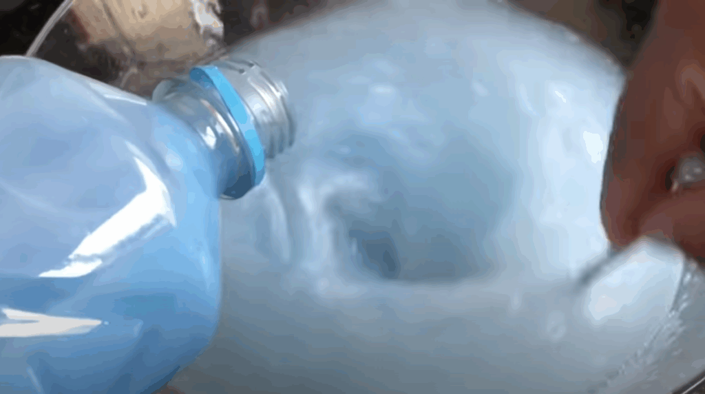 2. Za stáleho miešania prilievajte aviváž. Platí jednoduché pravidlo: na každý liter aviváže použite rovnaké množstvo vody a primeraný podiel soli.