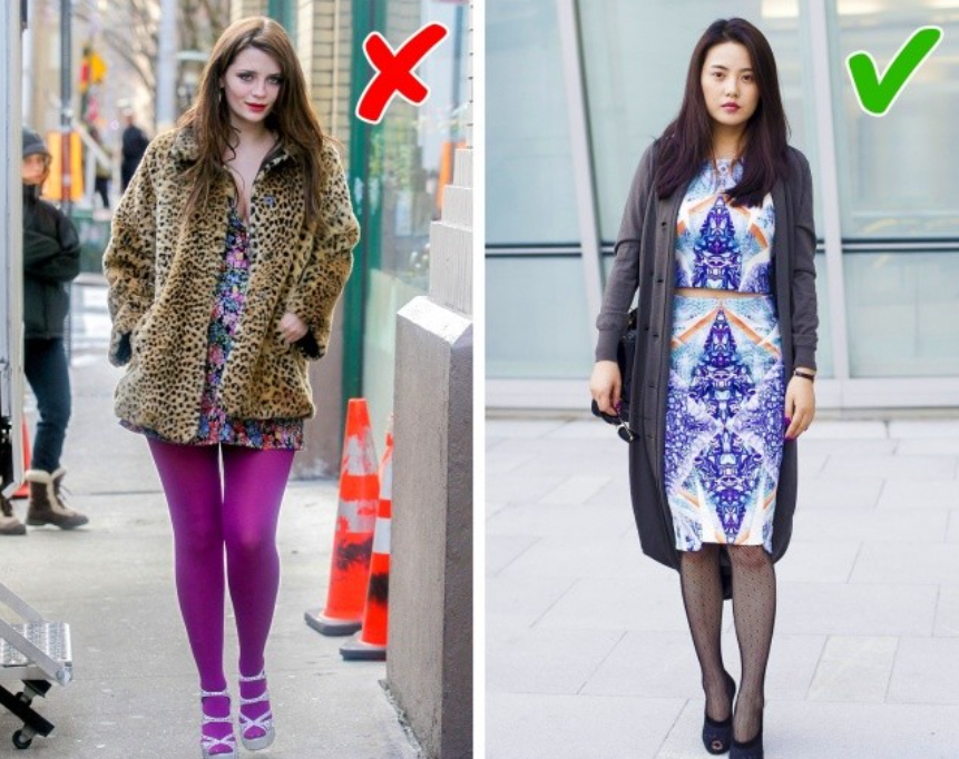 Pančuchy v jasných farbách môžu pôsobiť výstredne a neprofesionálne. Pokiaľ to nie je súčasť konkrétneho umeleckého štýlu, radšej ich vymeňte za klasické odtiene – čiernu, tmavomodrú či telovú.