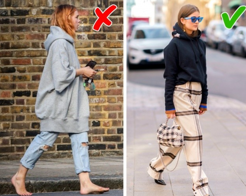 Veľké, „oversize“ mikiny bez tvaru pôsobia neupraveným dojmom. Skôr než schovávať postavu, zvýraznite ju vhodne padnúcim blejzrom, kabátikom alebo kardigánom.