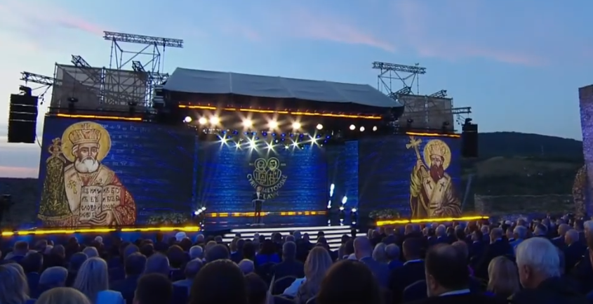 Diváci mohli vidieť ženy v bielych rúchach, ktoré stvárňovali staré Slovanky, alebo herečku Idu Rapaičovú ako slovanskú kňažku recitujúcu Proglas v staroslovienčine. Zazneli aj árie z opery Svätopluk a výjavy z dejín Veľkej Moravy, ktoré boli doplnené úryvkami z projektu Slovenský panteón, realizovaného RTVS v roku 2020. Práve z tohto filmu pochádzali zábery, v ktorých sa objavili herci Kamil Mikulčík a Ady Hajdu ako Cyril a Metod.