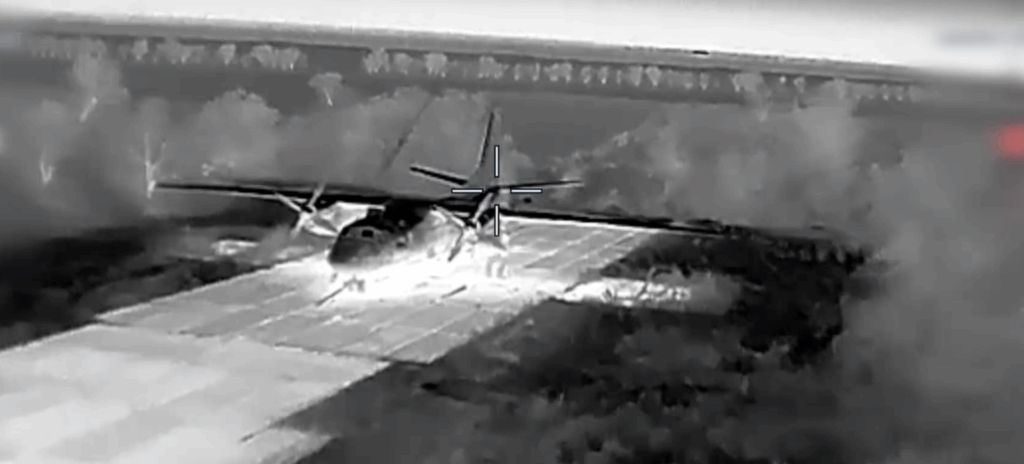 Rozviedka na sociálnych sieťach zverejnila aj video so slovami: „Pozrite sa, ako krásne horí moskovské lietadlo An-26.“