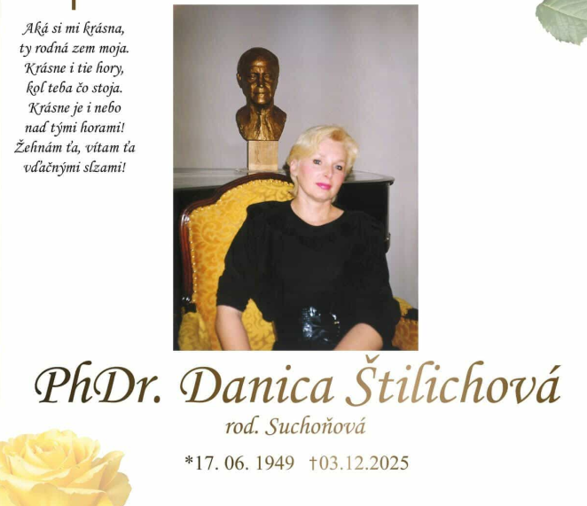 Posledná rozlúčka s Danicou Štilichovou sa uskutoční v pondelok 8. decembra v Pezinku, kde sa narodila a kde prežila veľkú časť svojho života. Jej smrť znamená stratu nielen pre rodinu a známych, ale aj pre slovenskú hudobnú kultúru.